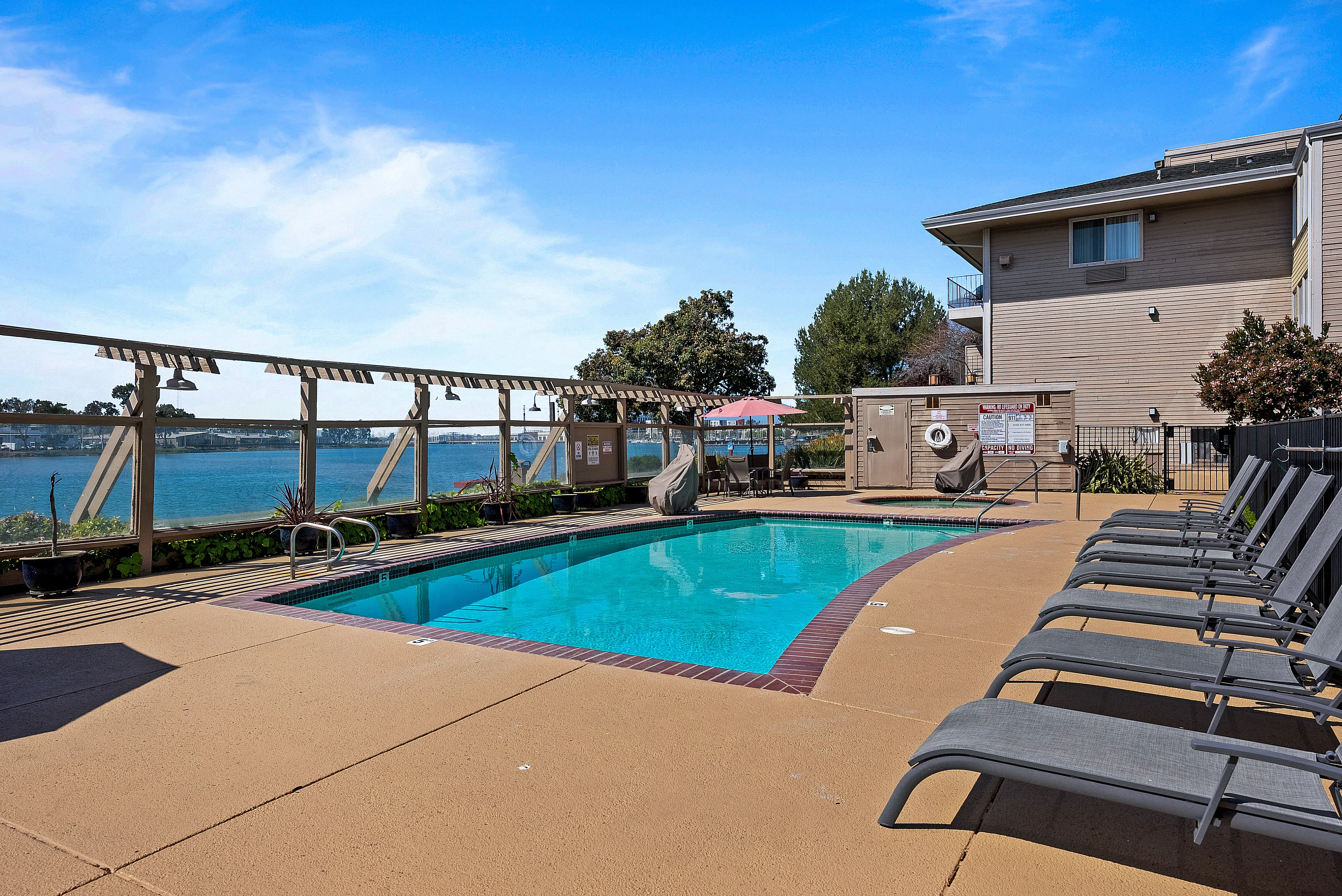 Beat the heat this long weekend with a dip in our outdoor waterfront pool. It's the perfect spot to cool off and relax during this heat wave.