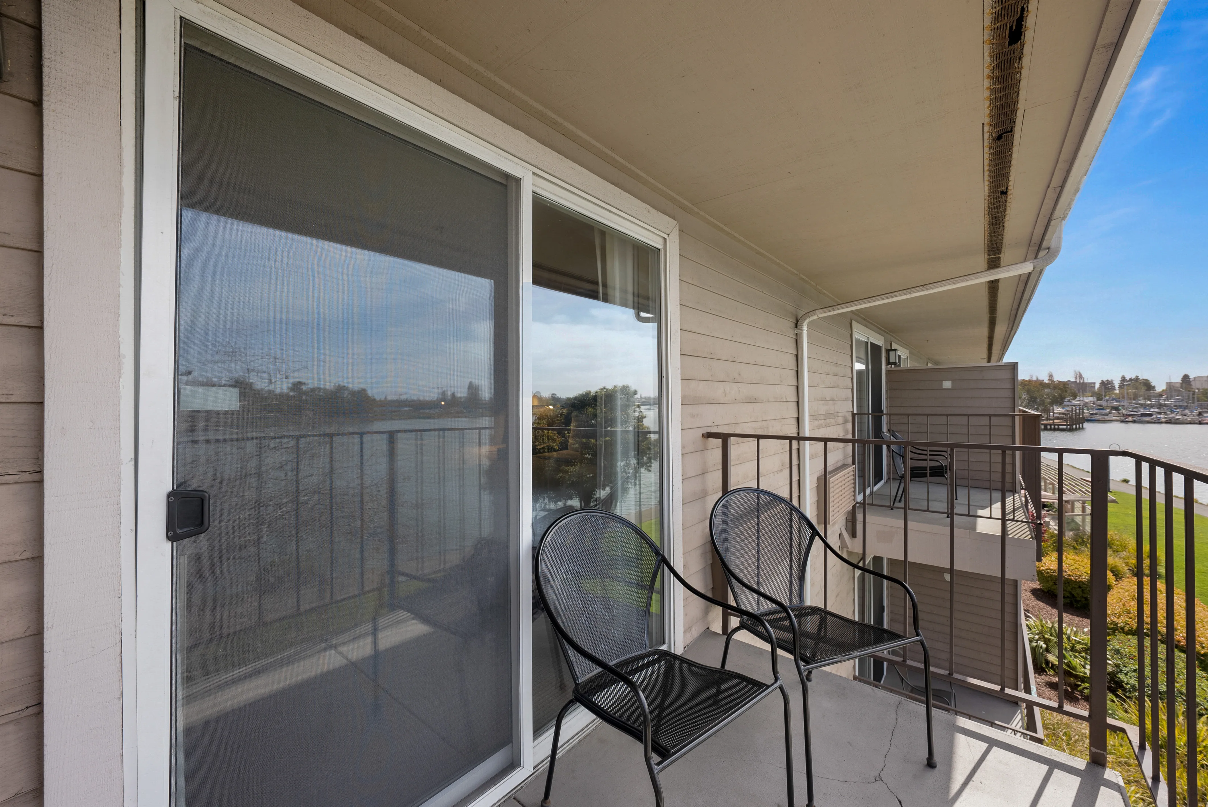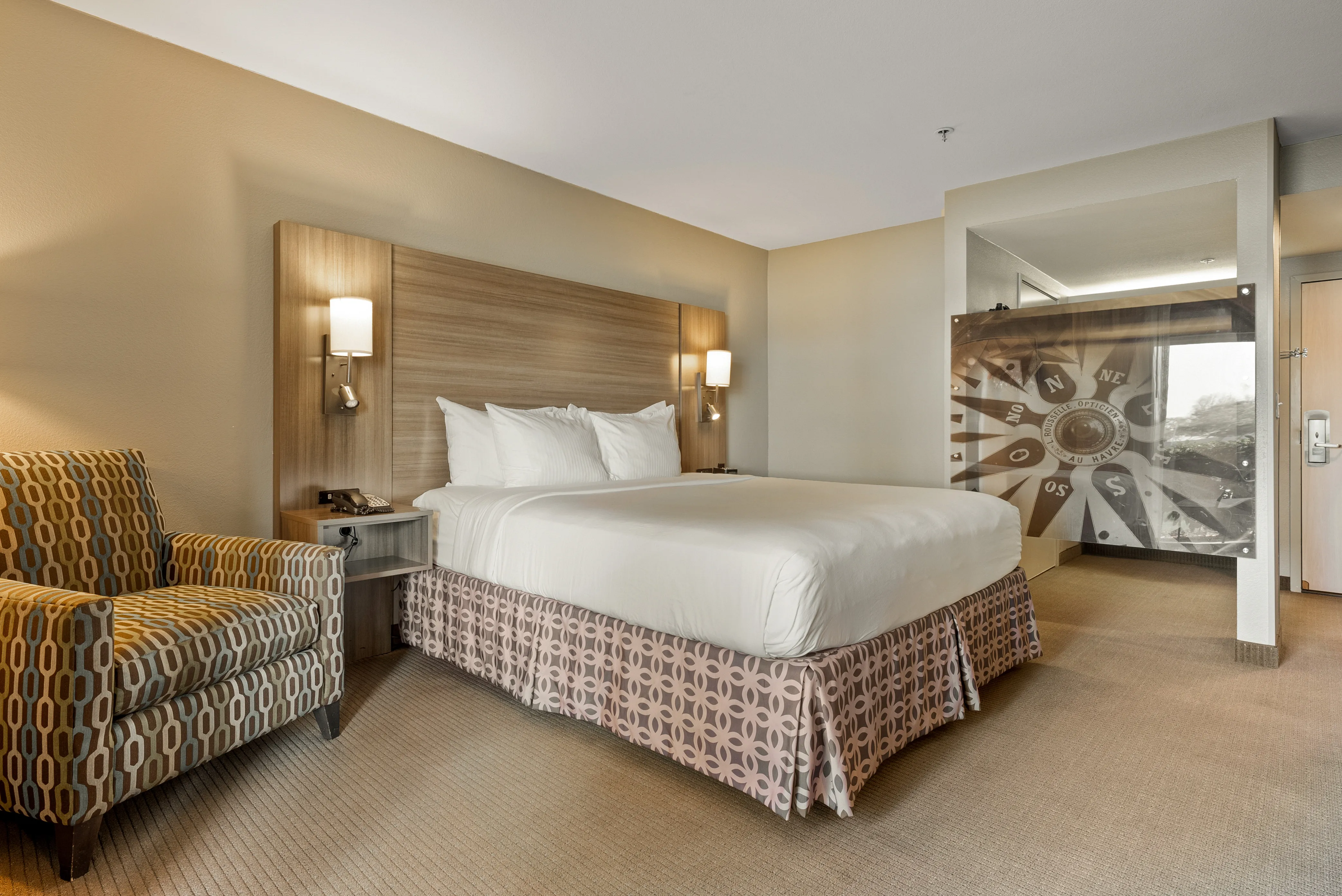 These rooms feature one King bed with a view of the Embarcadero Cove waterfront. Bathrooms offer walk-in, glass-enclosed showers (top two floors) or bathtub/shower combinations (ground floor), hair dryers and complimentary toiletries.